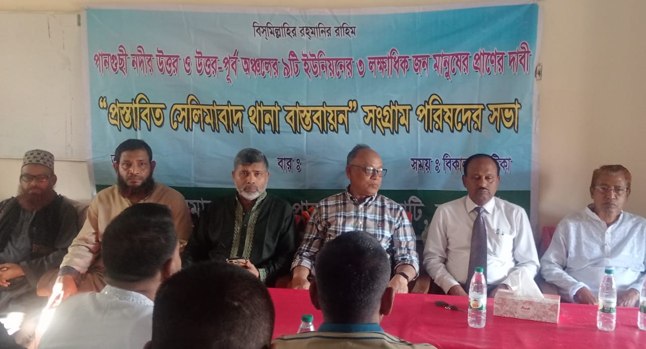 প্রস্তাবিত সেলিমাবাদ থানা বাস্তবায়নের লক্ষ্যে এক জরুরি সভা অনুষ্ঠিত হয়েছে। আজ বুধবার (৮ এপ্রিল ২০২৬) বিকাল ৪টা ৩০ মিনিটে সেলিমাবাদ কলেজের হলরুমে এ সভার আয়োজন করা হয়। সভায় সভাপতিত্ব করেন ৬ নং চিংড়াখালী ইউনিয়নের সভাপতি আব্দুস সুবাহান মাস্টার। প্রধান অতিথি হিসেবে উপস্থিত ছিলেন প্রস্তাবিত সেলিমাবাদ থানার সংগ্রামী আহ্বায়ক অ্যাডভোকেট নজরুল ইসলাম কাজল। বিশেষ অতিথি হিসেবে বক্তব্য রাখেন অ্যাডভোকেট ইস্কান্দার আলী খান। এছাড়াও উপস্থিত ছিলেন প্রস্তাবিত সেলিমাবাদ থানা সংগ্রাম পরিষদের সঙ্গে সম্পৃক্ত বিভিন্ন সংগঠনের নেতৃবৃন্দ। অন্যান্যের মধ্যে বক্তব্য দেন ৯০’র ছাত্রদল ফোরামের আহ্বায়ক ফেরদাউস হোসেন খান, উপজেলা যুবদলের সিনিয়র যুগ্ম আহ্বায়ক আলী আজিম বাবুল, উপজেলা ছাত্রদলের সাবেক সাধারণ সম্পাদক সুজাউদ্দিন সুজা, দৈবজ্ঞহাটি ইউনিয়ন বিএনপির সভাপতি মিজানুর রহমান ডিয়ার ও সাধারণ সম্পাদক আলম পারভেজ লিটন, তেলিয়াতি ইউনিয়ন বিএনপির সিনিয়র সহ-সভাপতি আলমগীর হোসেন চৌধুরী, পঞ্চকরণ ইউনিয়ন বিএনপির সাধারণ সম্পাদক আবুল হাসান কাজী এবং সেলিমাবাদ থানা সংগ্রাম পরিষদের সদস্য দেলোয়ার হোসেন। সভায় বক্তারা দ্রুত সেলিমাবাদ থানা বাস্তবায়নের দাবি জানান এবং এ লক্ষ্যে ঐক্যবদ্ধ আন্দোলন গড়ে তোলার আহ্বান জানান। এসময় দৈবজ্ঞহাটি ও পার্শ্ববর্তী ইউনিয়নের শতাধিক নেতাকর্মী উপস্থিত ছিলেন।